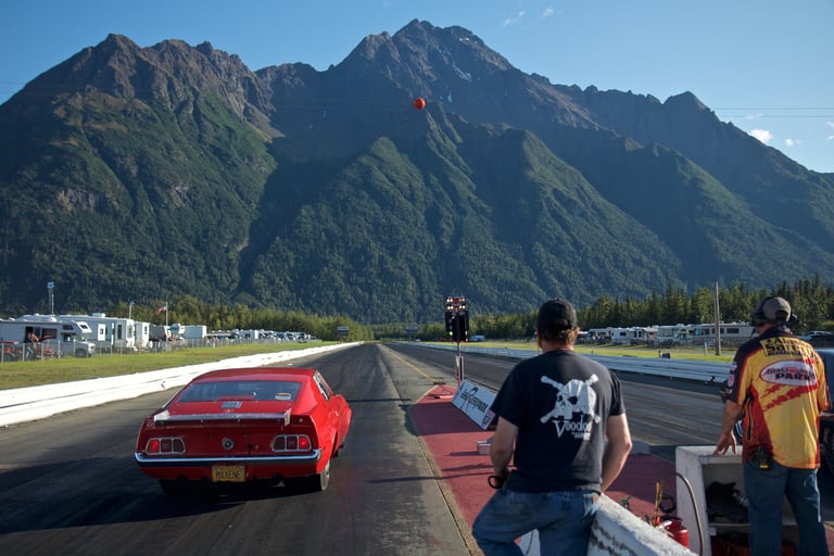 Alaska Raceway Park, nestled in Palmer, Alaska, is a premier motorsports complex that hosts races from Mother's Day to Labor Day. Situated near Butte, the Knik River, and the Knik Glacier, this renowned racing venue is located at Mile 10.4 of the Old Glenn Highway, approximately 41.5 miles northeast of Anchorage, Alaska. The backdrop of the 6,398-foot Pioneer Peak adds to the scenic beauty, making it a favorite among race fans worldwide. Perched at an elevation of 63 feet above sea level, the track offers optimal air pressure, ideal for high-performance racing.